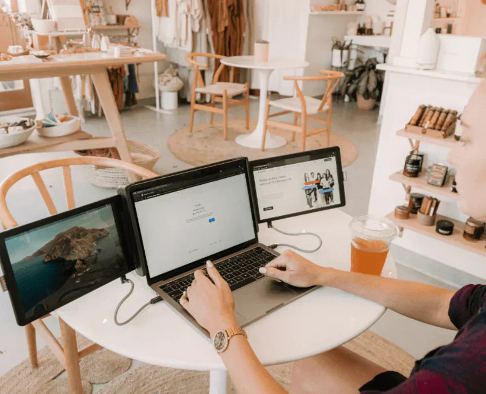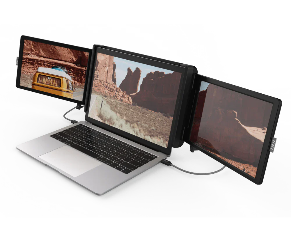 Mit Tripix, dem tragbaren Triple-Screen-Monitor, wird Multitasking mühelos.